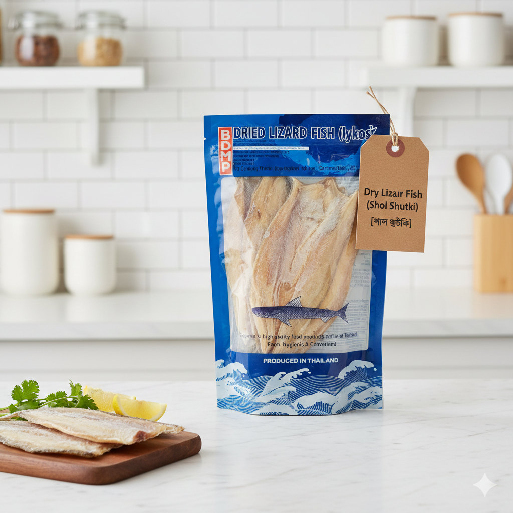 The Dry Lizard Fish (scientifically known as Saurida tumbil, but often referred to in local markets as Suri or Suri-Shol due to its elongated, lizard-like appearance) is a staple of the dried fish industry. It should not be confused with the freshwater Shol (Snakehead); this is a saltwater variety prized for its firm, meaty texture and its ability to absorb bold spices.