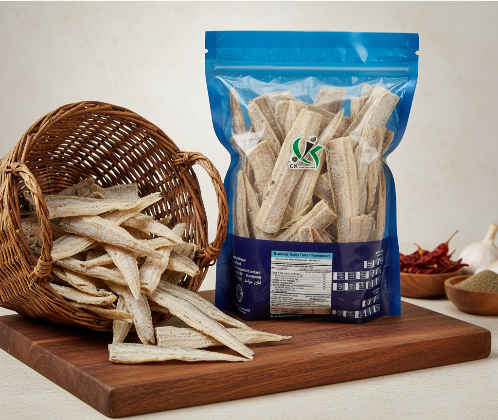 Commonly known as Ribbon Fish, the Suri Shutki is a coastal favorite in Bangladesh. With its long, blade-like shape and shimmering silver skin, it is one of the most popular dried fishes due to its firm texture and ability to absorb bold, spicy flavors.