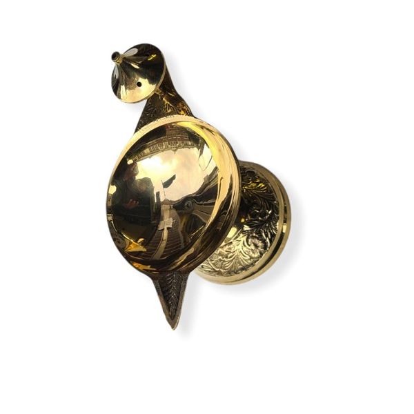 Divine Iconography: The backplate (Prabhavali) showcases a detailed relief of Goddess Laxmi, serving as both a functional lamp and a holy idol.