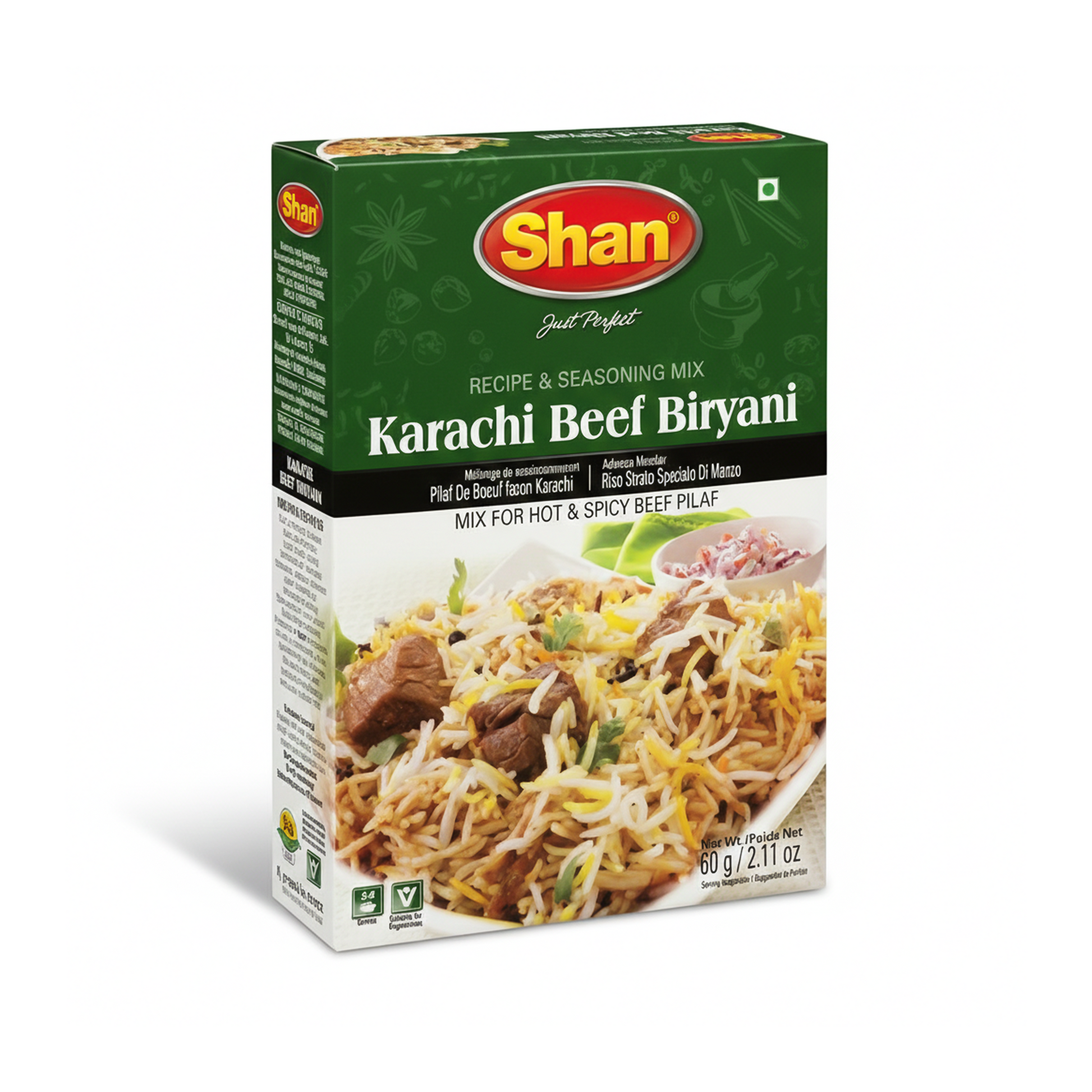 Shan Karachi Biryani Masala is a specially formulated blend designed to recreate the iconic "Karachi-style" biryani—known globally for being significantly spicier, tangier, and more aromatic than traditional versions. This mix captures the vibrant, bustling food culture of Karachi, featuring a robust heat profile and the inclusion of whole spices and dried plums to create a truly multi-dimensional rice dish.