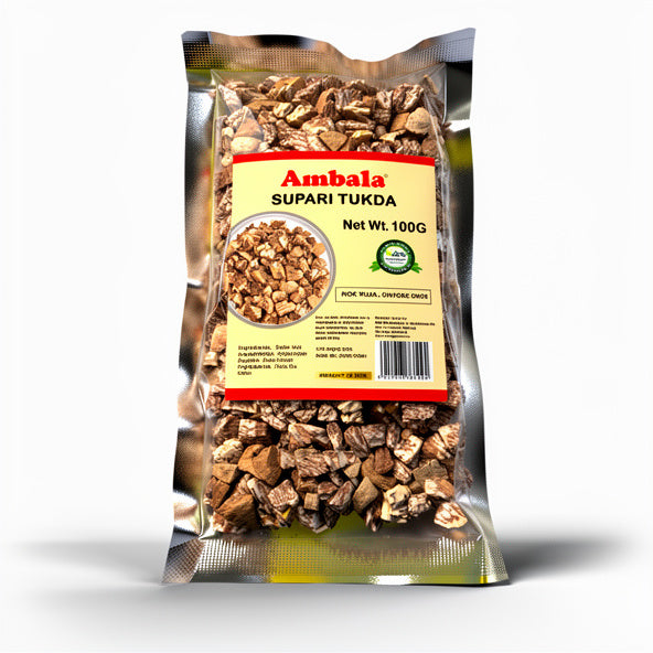 Ambala Supari Tukra is a traditional betel nut preparation featuring finely cut pieces of premium areca nut. This classic Indian delicacy offers an authentic taste experience with its distinctive flavor and texture. Perfect for those who enjoy traditional betel nut products, it's ideal for after-meal consumption or as a refreshing treat throughout the day. Each piece is carefully prepared to maintain quality and freshness, delivering the genuine taste you expect from this time-honored preparation.