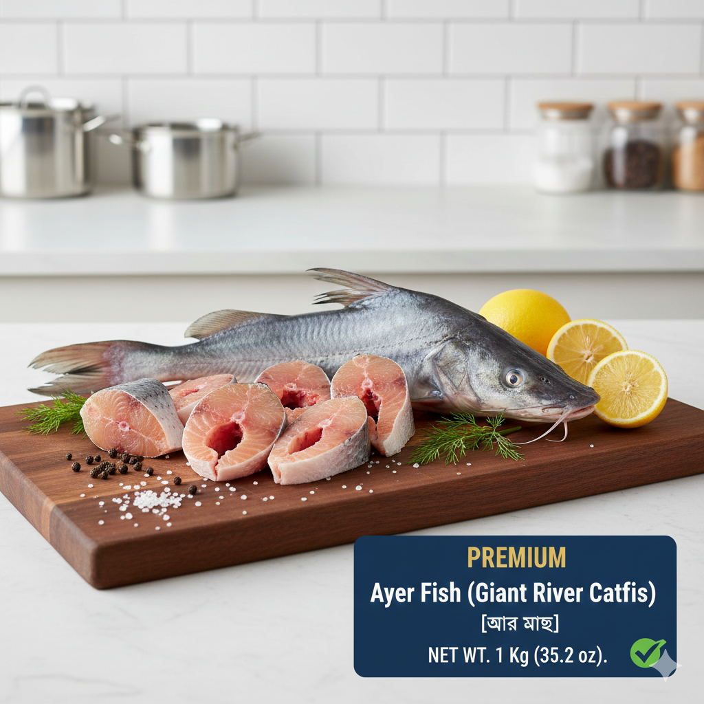 Ayer Fish (Long-whiskered Catfish) is a true delicacy of the large rivers of South Asia. Often referred to as "the steak of the river," Ayer is prized for its thick, meaty texture and its remarkably few bones. This makes it a top choice for those who prefer a more substantial, "meaty" fish experience compared to smaller river varieties.