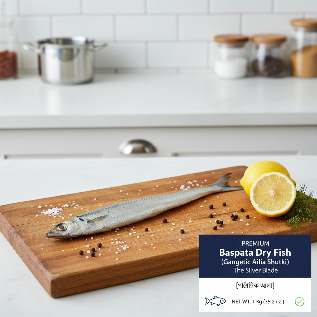Baspata Shutki, often called the "Bamboo Leaf" fish due to its long, slender, and flat shape, is a premium freshwater delicacy. Known scientifically as Ailia coila, this fish is a favorite among shutki lovers who enjoy a tender texture and a mild, refined aroma.