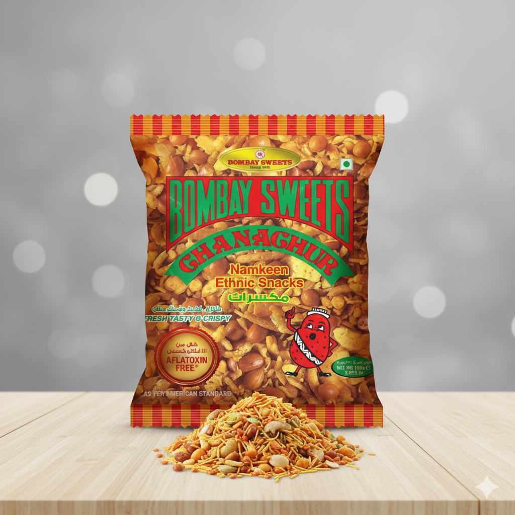 Bombay Sweets Chanachur is known for its sour-spicy-salty balance. Unlike other brands that might lean too heavily into chili, Bombay Sweets uses a high concentration of Bit Salt (Black Salt) and Citric Acid, giving it that addictive tanginess that makes your mouth water.