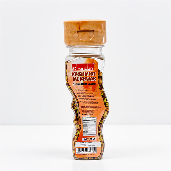 Chandan Kashmiri Mukhwash is a premium mouth freshener crafted with authentic Kashmiri ingredients and aromatic sandalwood essence. This traditional digestive aid combines carefully selected spices and natural flavors to provide a refreshing finish after meals. The blend features the cooling properties of sandalwood, complemented by traditional Kashmiri spice notes that have been valued for centuries in South Asian cuisine. Perfect for those seeking an authentic, natural alternative to conventional breath fresheners, this mukhwash delivers both flavor and the digestive benefits associated with traditional formulations. Ideal for serving after dinner or special occasions, it offers a sophisticated way to cleanse the palate while supporting digestive wellness.