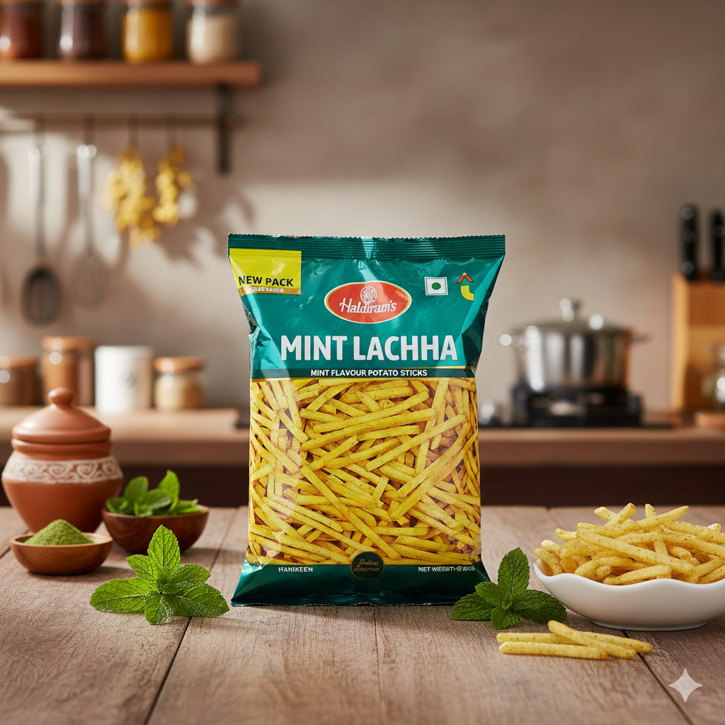 Haldiram's Mint Mixture is the ultimate refreshing twist on the classic Indian savory mix. Combining the crunch of traditional "Namkeen" with the cooling, herbal notes of fresh garden mint (Pudina), this snack offers a unique sensory experience that stands out from the usual spicy varieties.