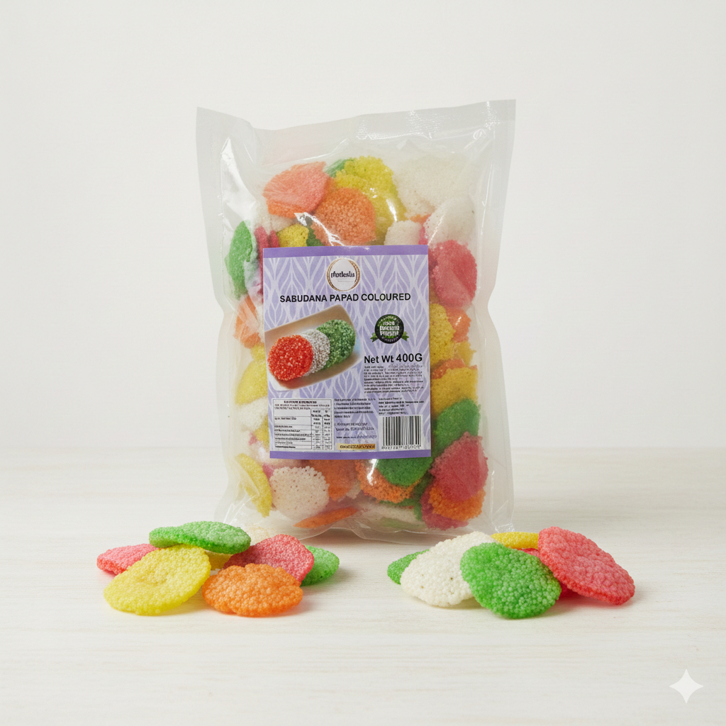White Sabudana Papad (Sago Wafers) is a traditional, sun-dried delicacy known for its pearly white appearance and incredible crunch. A staple in South Asian households, these papads transform from small, translucent discs into large, airy, and snowy-white crisps when deep-fried.